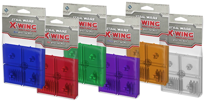 Customize your X-Wing™ squadron with colored X-Wing Bases and Pegs. This accessory package comes with four small bases, ten small pegs, one large base, and three large pegs. All of them are made to the same specifications as standard X-Wing bases and pegs, and all of them are tournament-legal. Use these bases to identify the different ships in your squadron, to distinguish your squadron from your opponent’s, or simply to add an extra touch of color to your battles for the galaxy.