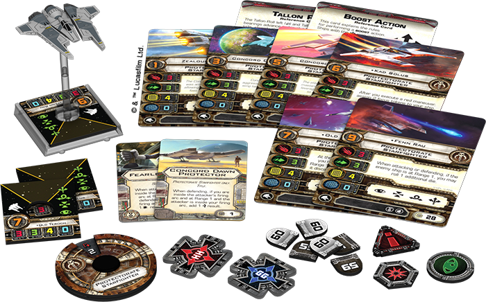 Also known as the “Fang fighter,” the Protectorate starfighter was a fast and sleek Mandalorian craft custom-built for fighter combat. The Protectorate Starfighter Expansion Pack brings this aggressive ship to X-Wing™ as one of the most potent – and most deceptively simple – vessels in the Scum and Villainy fleet with three attack and three agility. Although the ship has no shields, its pilots favor aggressive approaches, meeting their foes in deadly head-on charges. In addition to its pre-painted miniature, the expansion contains six ship cards and two upgrades.